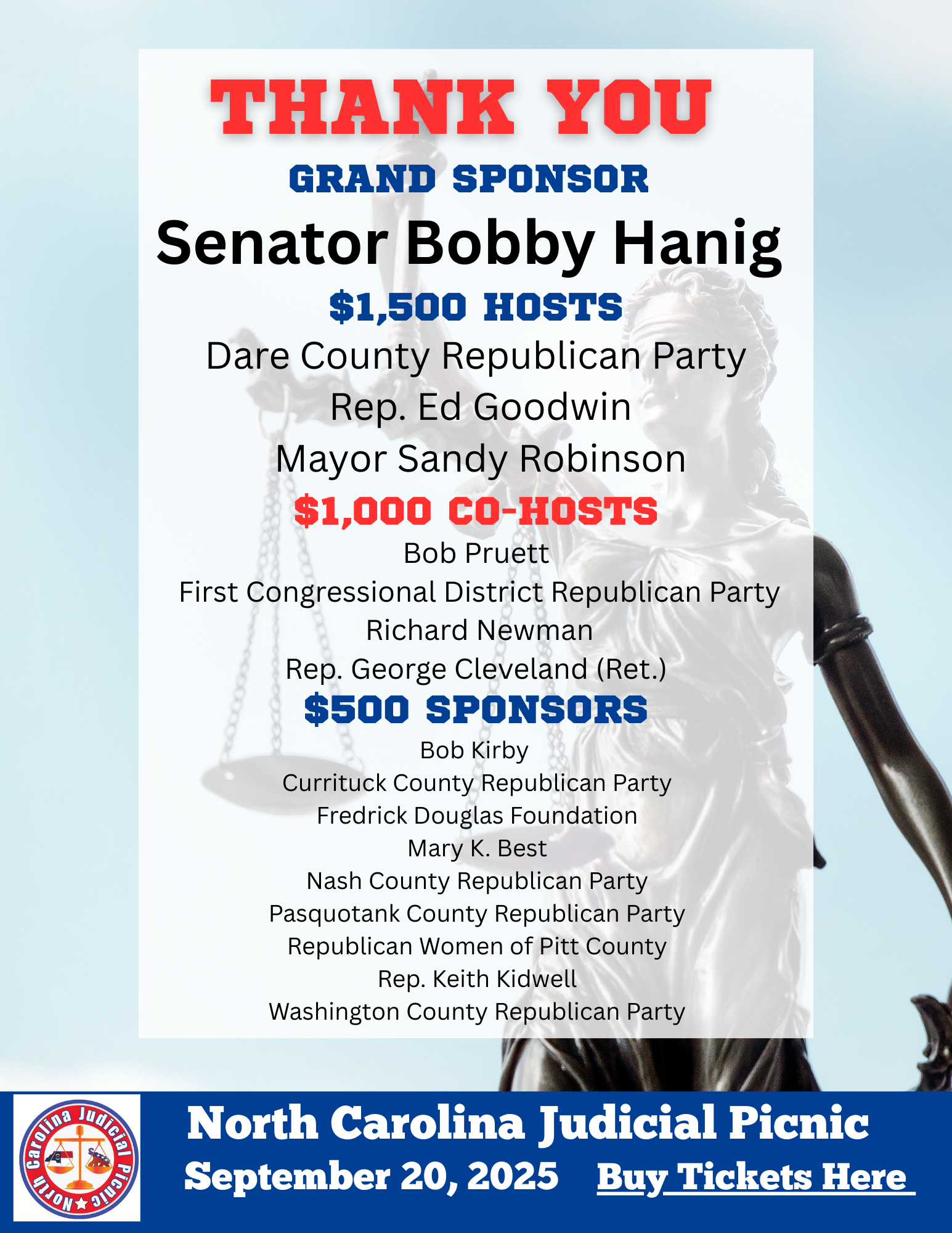 North Carolina’s Judicial Picnic is the perfect opportunity to support our conservative judicial candidates while enjoying delicious local cuisine. This event is a fantastic way to connect with the candidates who are shaping our judicial system and to show your support for their campaigns.